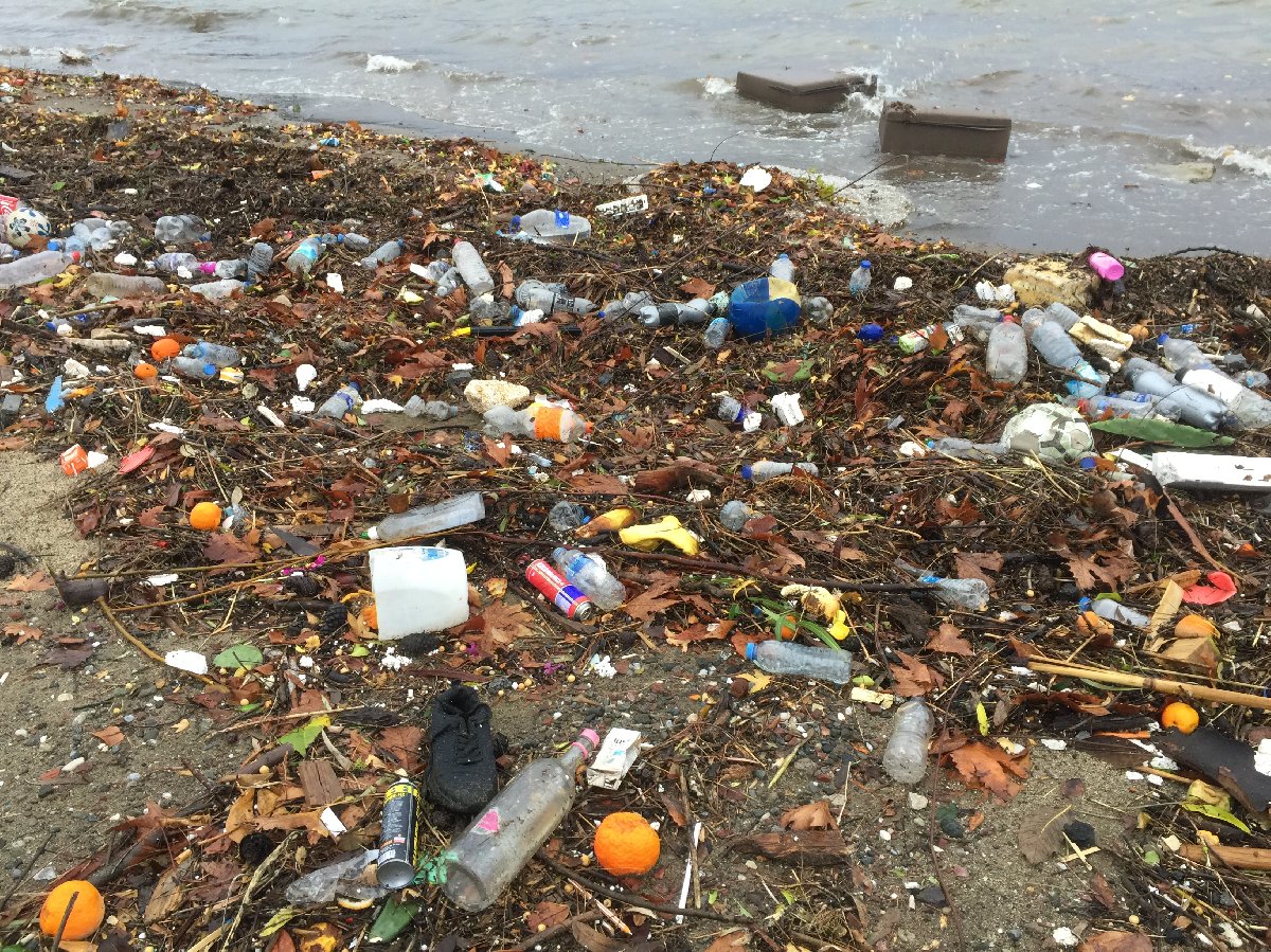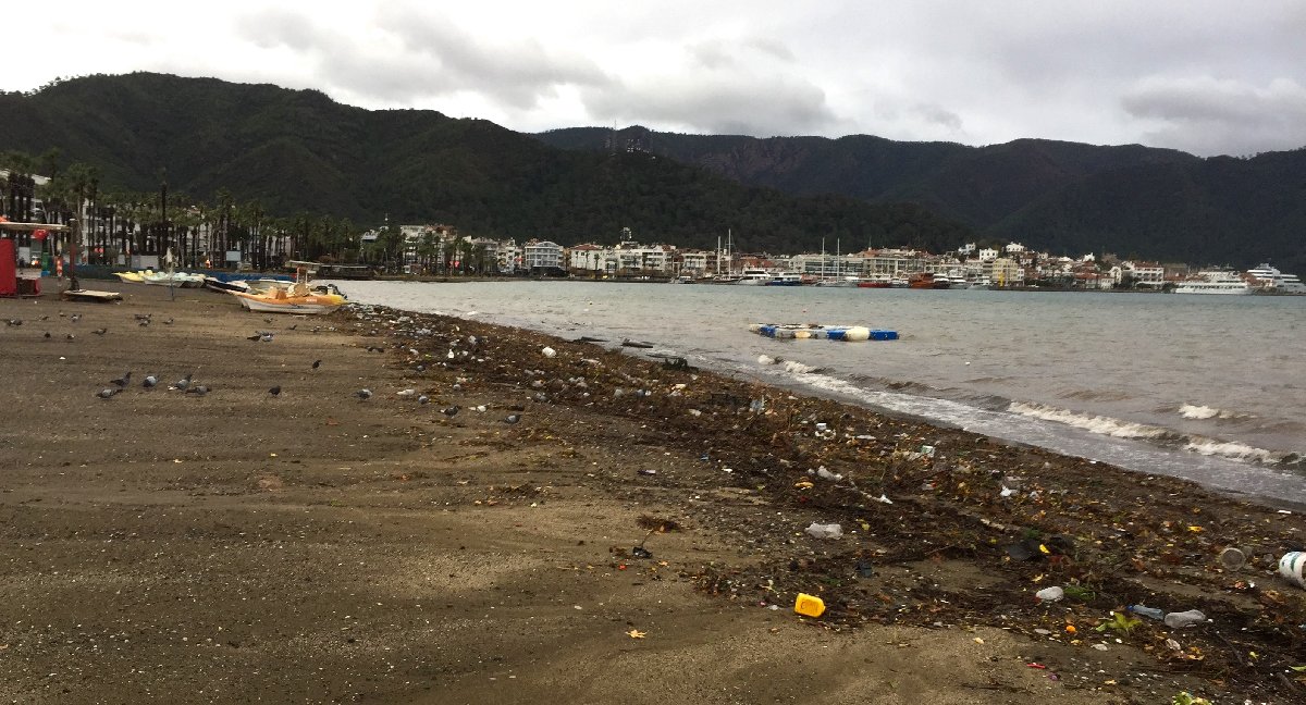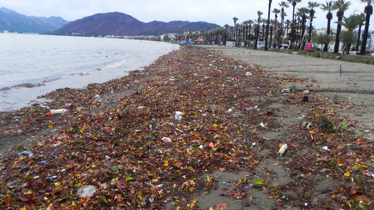 Daha önce denize inen kuru yapraklar ile birlikte denize atılan plastik şişeler, yoğurt kapları, tekne minderleri, ayakkabılar ve daha akla gelebilecek her türlü atık tüm sahili kapladı.