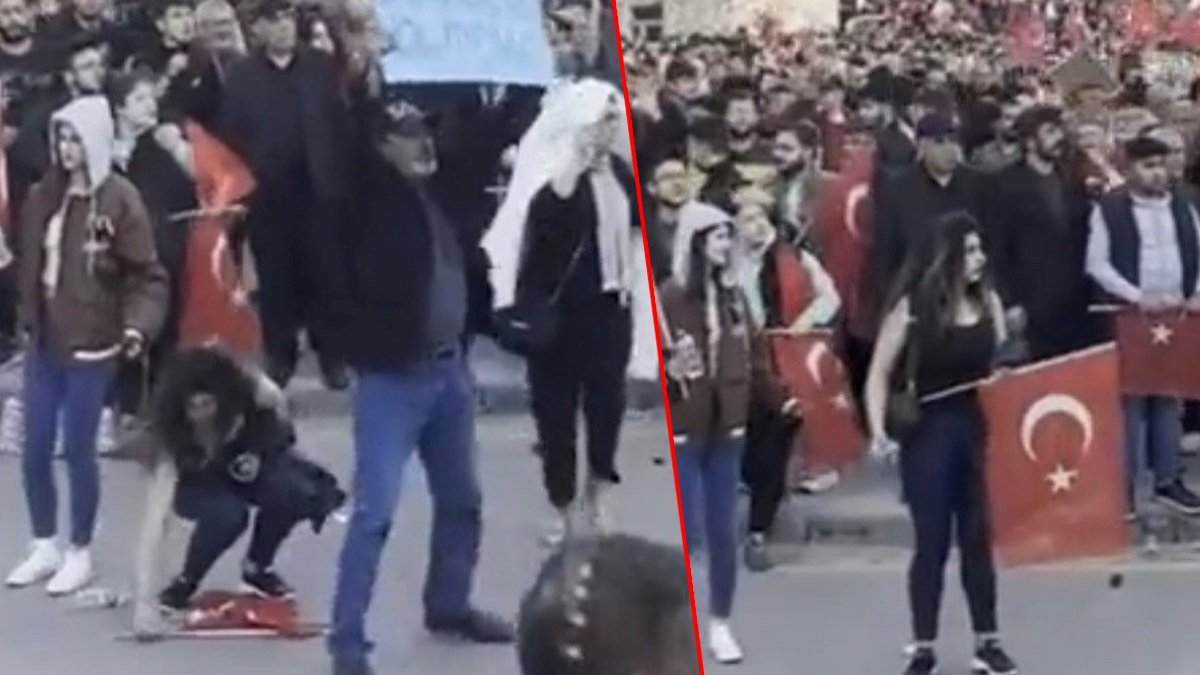 Ekrem İmamoğlu’na ve miting alanını dolduran Erzurumlulara düzenlenen taşlı saldırıyla ilgili görüntüleri gelmeye devam ediyor. Atılan taşlardan birinin eline çarpmasıyla yere düşürdüğü Türk Bayrağı'nı hemen alan genç bir kızın görüntüsü "o anların" sembol görüntülerinden biri oldu.