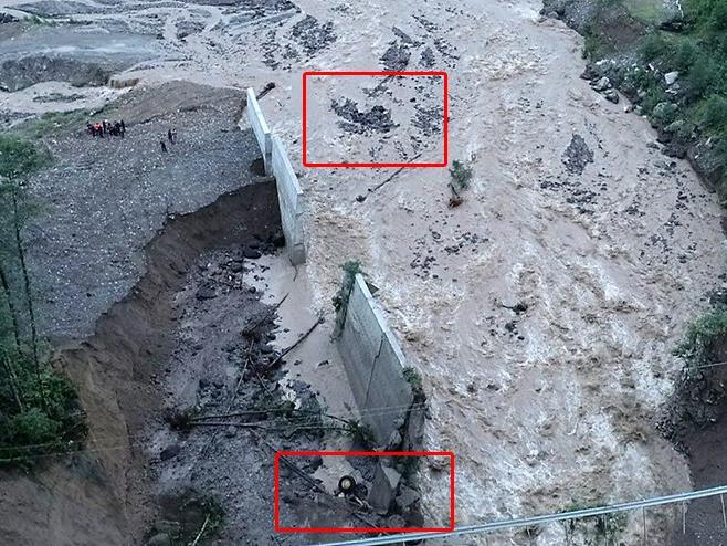 * Bazı araçlar dereye döküldü. Bazı arabaların ışığı yanıyordu inşallah içinde insan yoktur.