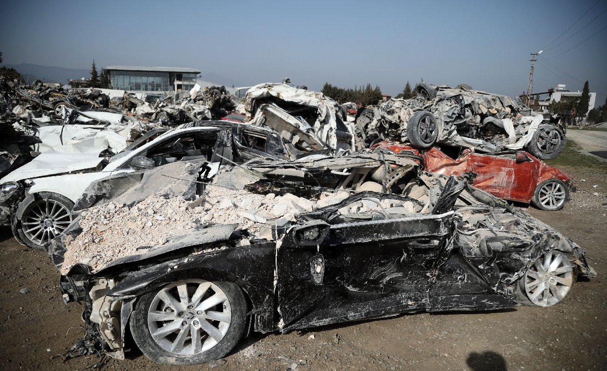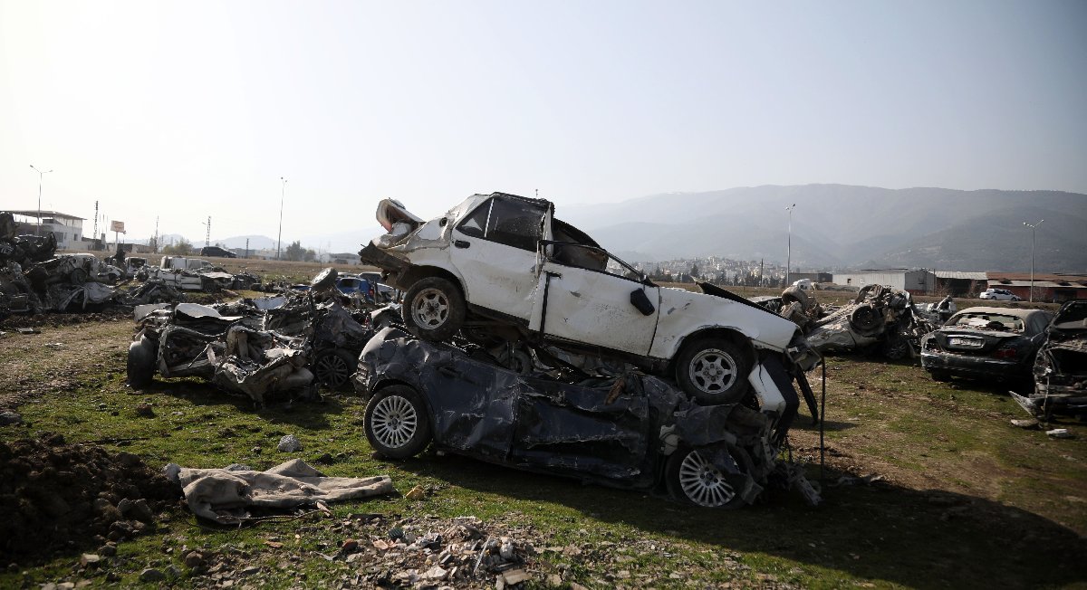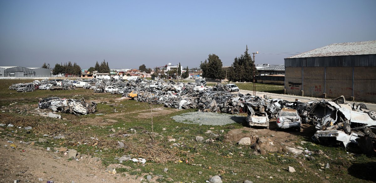 Üzerlerinde enkazdaki beton parçalarından kalıntıların da bulunduğu araçların birçoğunun ağır hasarlı olduğu görüldü. Deprem nedeniyle hasar almış araçların toplandığı alanlar, polis ve askeri personel tarafından korunuyor.
