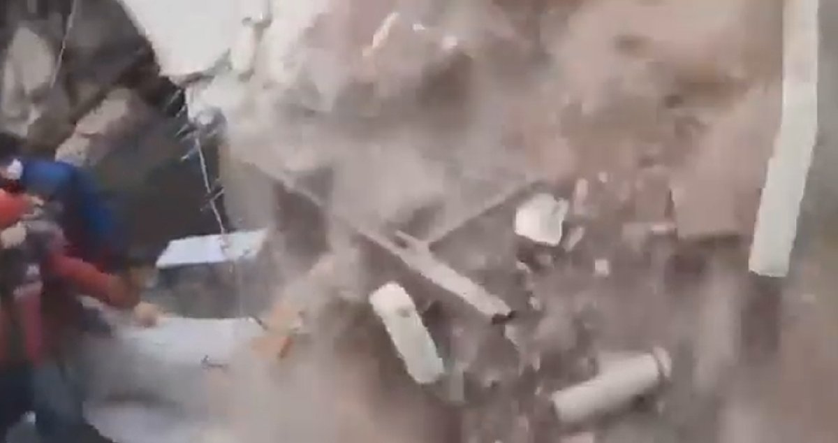 Yakınlarından haber almak için bekleyenlerin izlediği, bazılarının da cep telefonu kamerasıyla görüntülediği çalışmalar sırasında çökme meydana geldi.