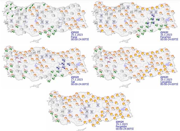 Yağışların yağmur ve sağanak, İç Anadolu'nun güneydoğusunun yüksekleri, Doğu Akdeniz'in iç kesimlerinin yüksekleri ve Malatya'nın yüksek kesimlerinde karla karışık yağmur ve kar şeklinde görüleceği tahmin ediliyor. İç ve doğu kesimlerde yer yer pus ve sis bekleniyor.