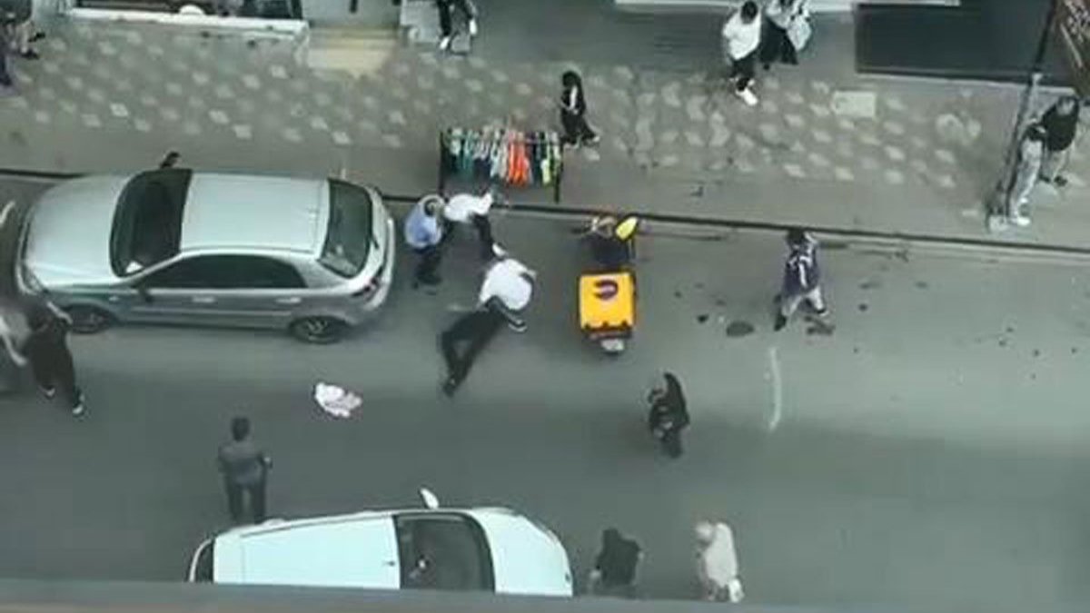 Öte yandan yaralının motosikletli kişilerin saldırısına uğradığı anlar ise cep telefonu görüntülerine yansıdı. Görüntülerde 2 kişinin yaralıya tekme attığı, bu sırada çevredekilerin engellemeye çalıştığı görüldü. (DHA)