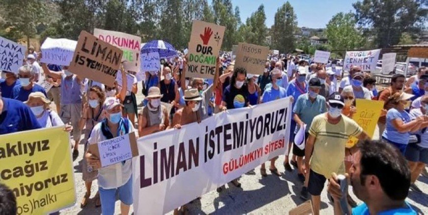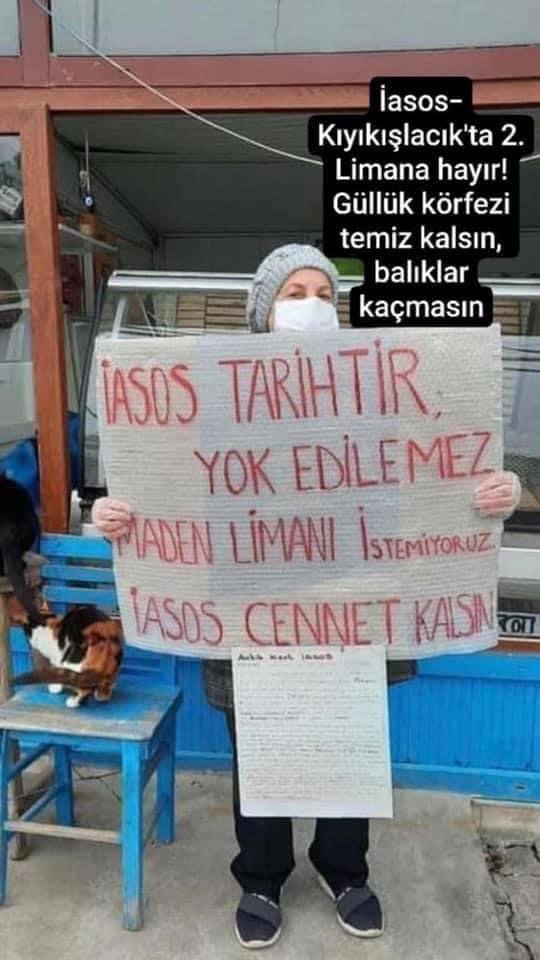 “Üç yıldır eylem yapıp çeşitli platformlarda sesimizi duyurmaya çalışıyoruz. Ayyıldız Madencilik ve Yükleme A.Ş. isimli özel şirket, devletin hüküm ve tasarrufunda bulunan deniz alanında, Güllük Körfezi’nin Tarım ve Turizme ayrılmış bölgesi, Muğla Milas’a bağlı antik kentimiz İasos-Kıyıkışlacık’ta, geri dönüşü olmayan çevre felaketine neden olacak maden yükleme limanı yapmak için ÇED sürecini başlatmıştı."