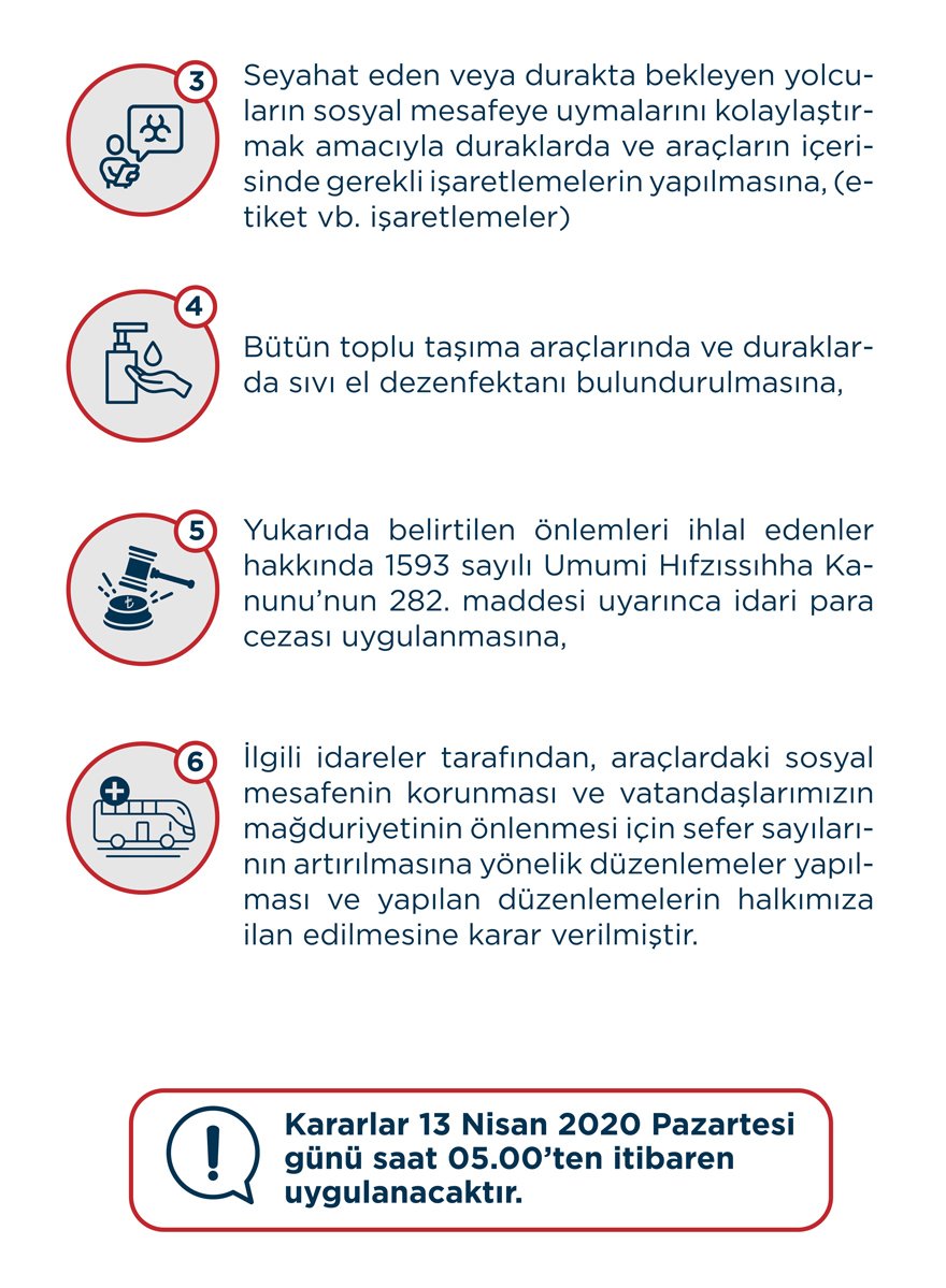 * Kararlar 13 Nisan 2020 Pazartesi günü saat 05.00’ten itibaren uygulanacaktır.