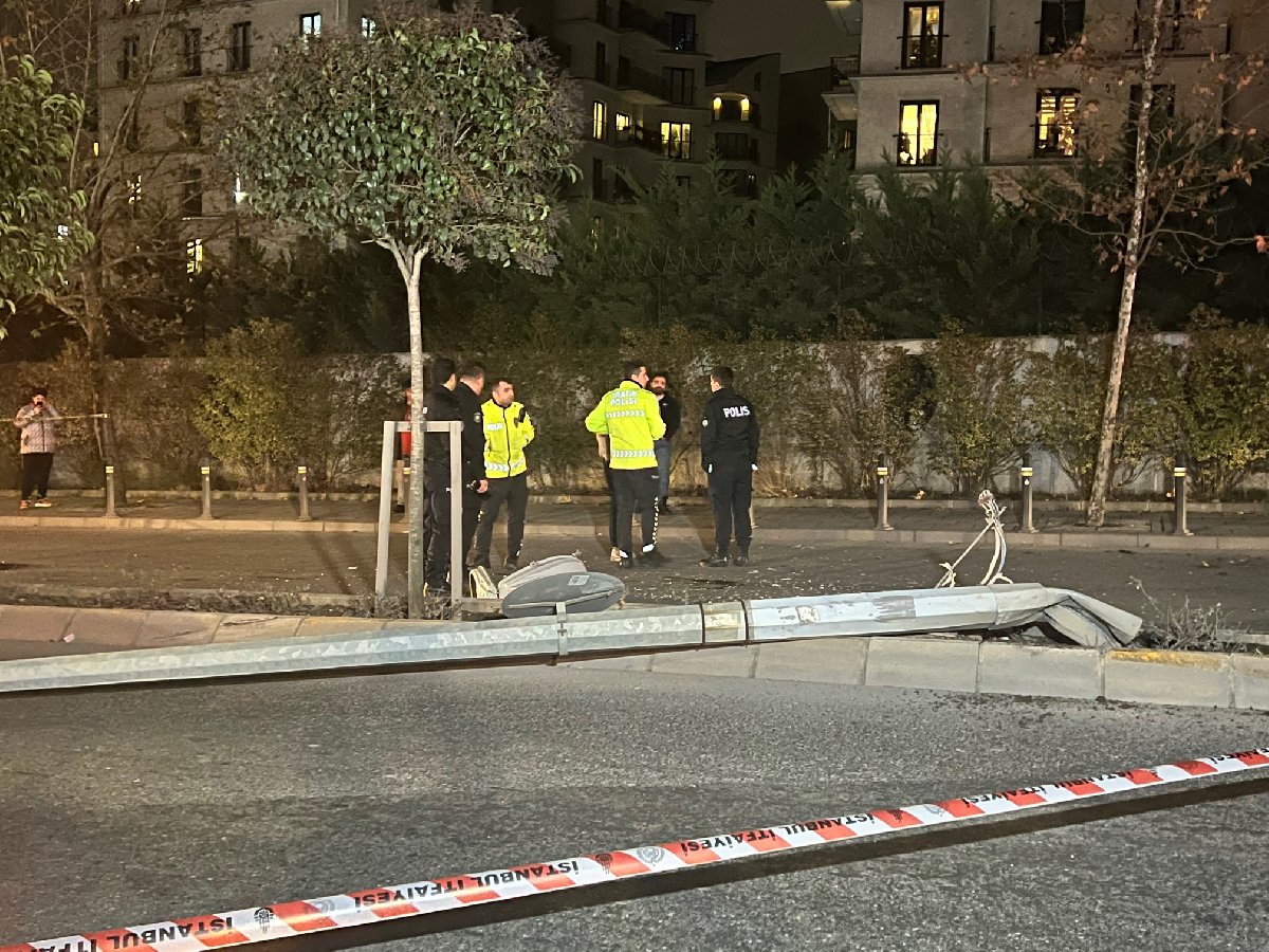 Devrilen aydınlatma direği, park halindeki otomobilin üzerine düştü. Park halindeki otomobilden inip markete giren sürücü Seymen Torga döndüğünde, direğin aracın üstüne düştüğünü gördü.