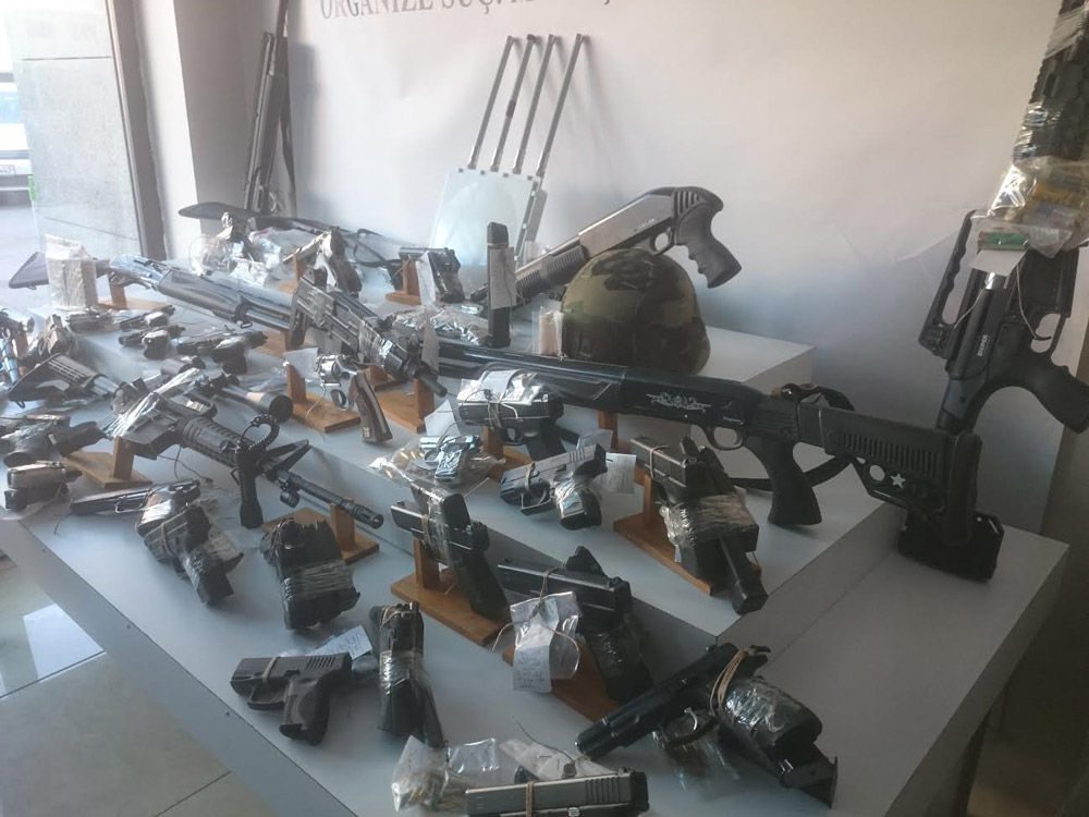 Adreslerde yapılan aramalarda, biri kurusıkı 27 tabanca, 8 uzun namlulu silah, 1 Uzi marka otomatik silah, 1 adet jammer cihazı, 1 adet susturucu ile çeşitli ebatlarda 570 adet fişek, 2 çelik yelek ele geçirildi. Silahlardan bazılarının bir otomobilin ön konsolundaki, elektrikli hidrolik zuladan çıkması dikkat çekti. Gözaltına alınan şüphelilerden 45’i adliyeye sevk edilirken, ele geçirilen cephaneliği andıran silah ve mühimmatlar Emniyet’te sergilendi.