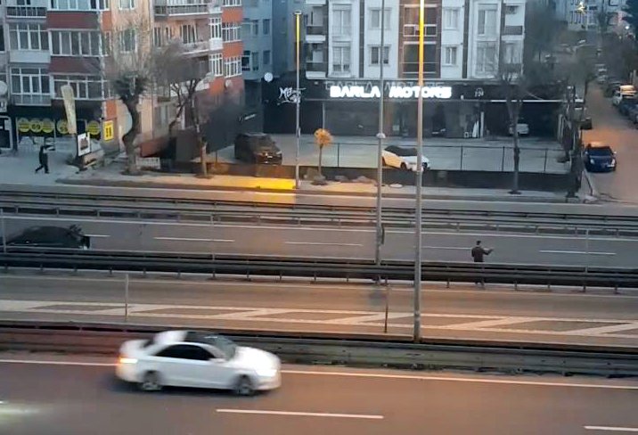 Arızalandığı sanılan otomobili durunca dörtlü ikaz lambalarını yakan ve inen sürücü geriden hızla gelen araçları uyarmak için yaklaşık 15 metre geri giderek eliyle işaret yapmaya çalıştı.