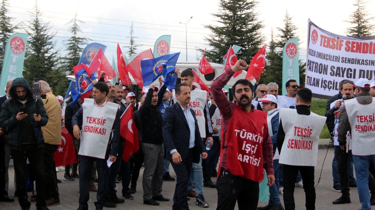 Protesto eyleminde konuşan TEKSİF Sendikası Genel Teşkilatlandırma ve Eğitim Sekreteri Ersin Çelik, fabrikada kısa süre önce teşkilatlanma çalışmalarına başladıklarını belirterek, "Sendikal faaliyetin önünün kesilmesi için işçi arkadaşlarımız işten atıldı. Bu arkadaşlarımızın sadece suçu anayasal hak olan sendikaya üye olmalarıydı. Biz devam ettik, gün geçtikçe acımasız işverene karşı daha da birleştik. 4 aydan bu yana çok değerli emekçi kardeşlerimizle birlikte yetkimizi aldık ve işverenle iki kez görüştük. İşveren sendikayı maliyet geleceği için kabul etmedi. Sen 12 saat çalıştırdığın yerde insanlara asgari ücret veriyorsun. Öyle bir dünya yok" dedi. İşçiler, eylemin ardından dağıldı. (DHA)