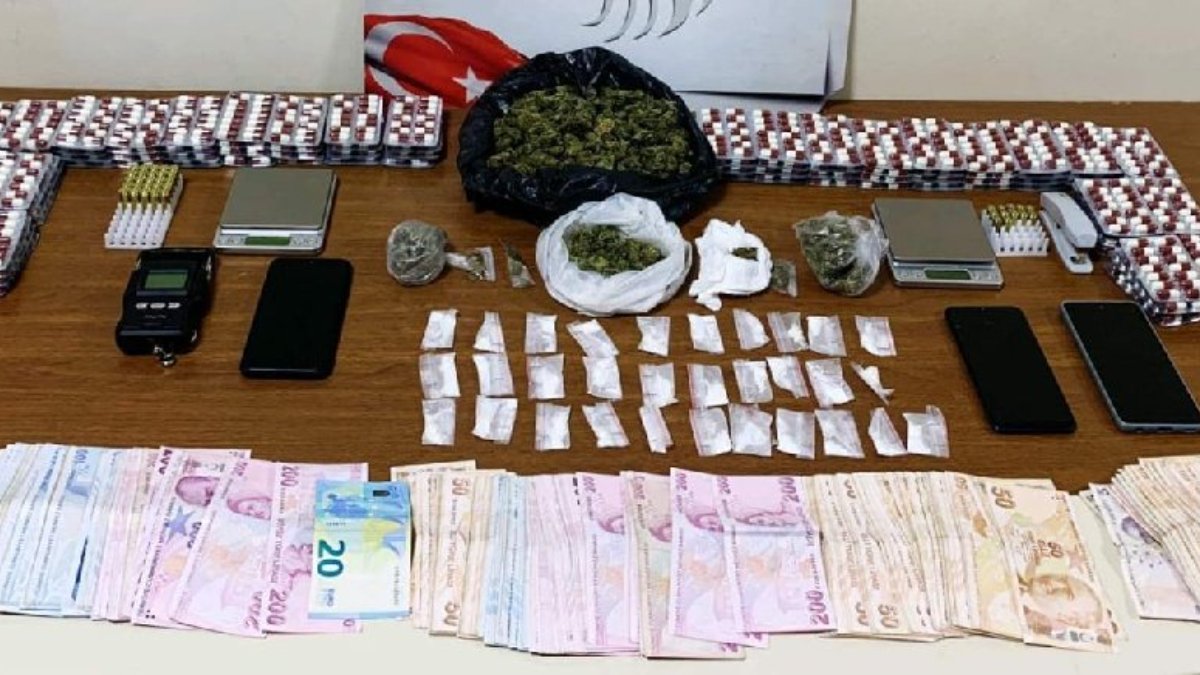 Polisin aramasında 2 hassas terazi, 300 gram esrar, 26 gram kokain, 1570 sentetik uyuşturucu hap ve uyuşturucu madde satışından elde edildiği tahmin edilen 27 bin 300 TL, 20 euro ve 6 dolar ele geçirildi. Gözaltına alınan şüpheliler, sorgulanmak üzere emniyete götürüldü. Soruşturma sürüyor. (DHA)