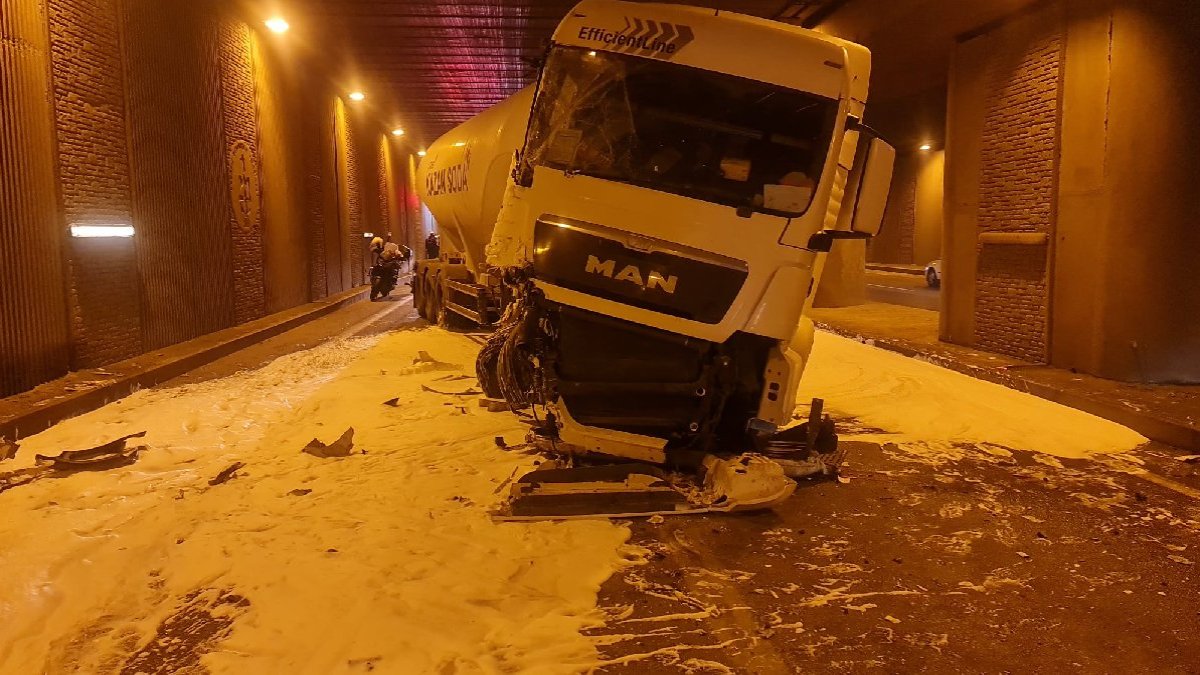 Kaza nedeniyle tünel geçişi trafiğe kapanırken, kilometrelerce araç kuyruğu oluştu. D-100 yolundaki araçlar yan yola yönlendirildi.