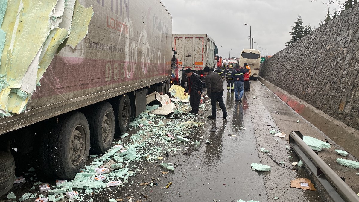 Çarpmanın etkisiyle savrulan TIR, önündeki kamyonete ve başka TIR'a çarptı. Kazayı görenler, durumu 112 Acil Çağrı Merkezi'ne bildirdi.