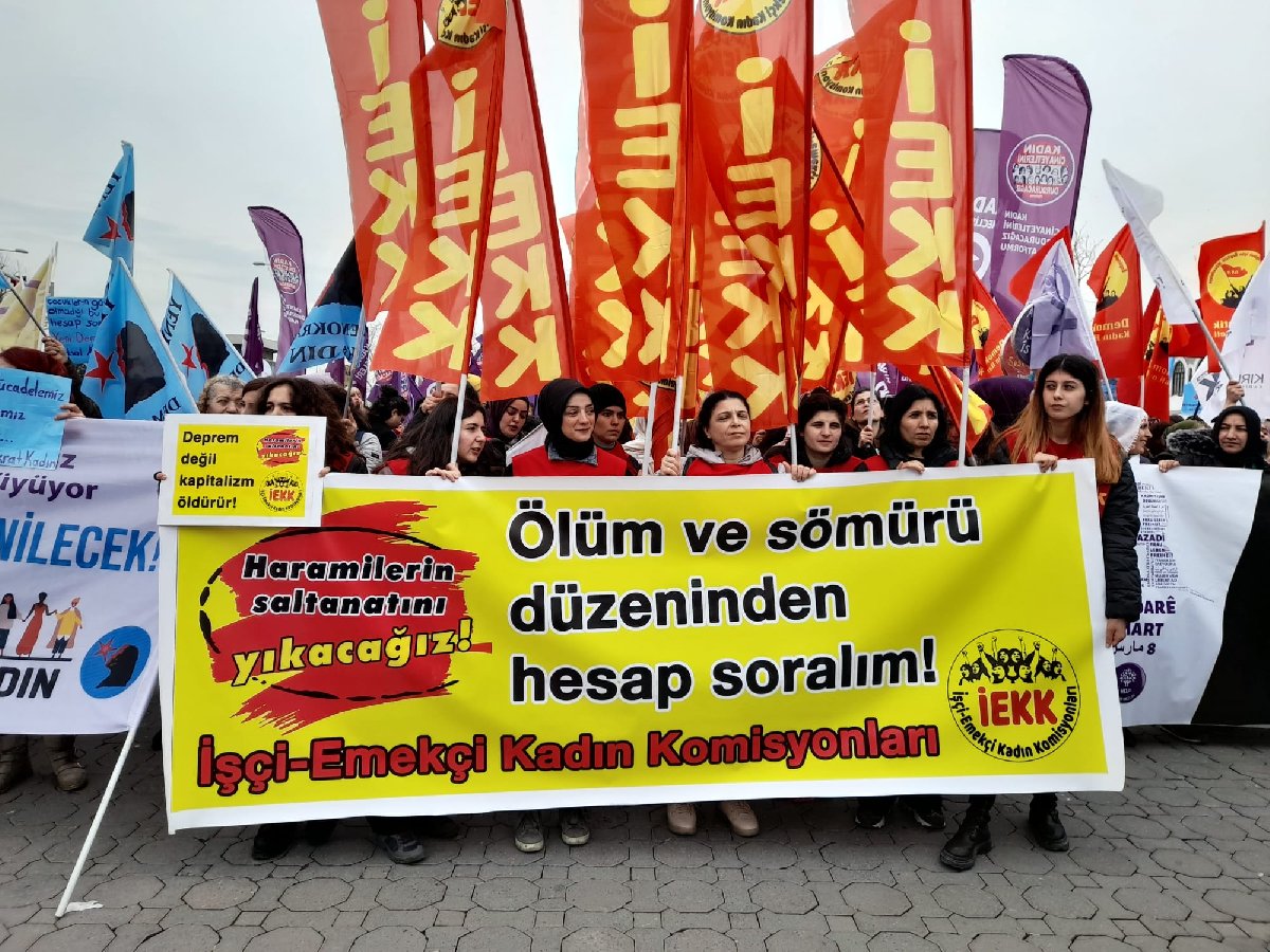 “Soracak hesabımız, yeniyi kuracak gücümüz var”, “Saray’ın yarattığı enkazdan birlikte kurtulacağız”, “Ölüm ve sömürü düzeninden hesap soralım”, “Kapitalizm enkazından yeni bir dünya yaratacağız” pankartları açan kadın grupları, “Kadın cinayetleri politiktir.” “Yaşasın kadın dayanışması” ve “hükümet istifa” sloganları atarak iktidara tepki gösterdi.