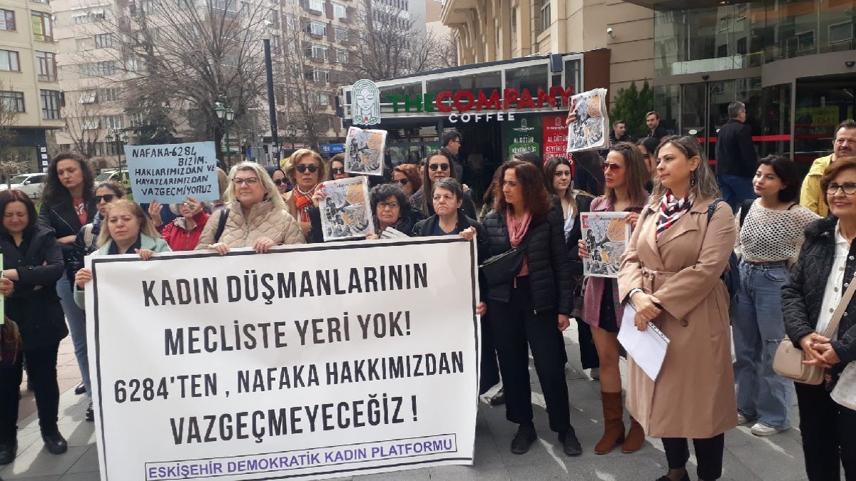 Eskişehir'de kadınlar haklarının siyasi pazarlık malzemesi yapılmasını protesto etti. Demokratik Kadın Platformu üyeleri, "İstanbul Sözleşmesi'ne, 6284’e, Nafaka Hakkı’na kadınların ihtiyacı var" dedi.