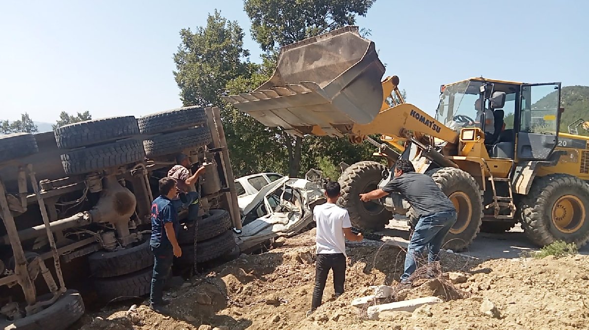 Kazanın ardından olay yerinde yapılan inceleme tamamlandı. İncelemenin ardından devrilen kamyon vinç yardımıyla kaldırıldı.