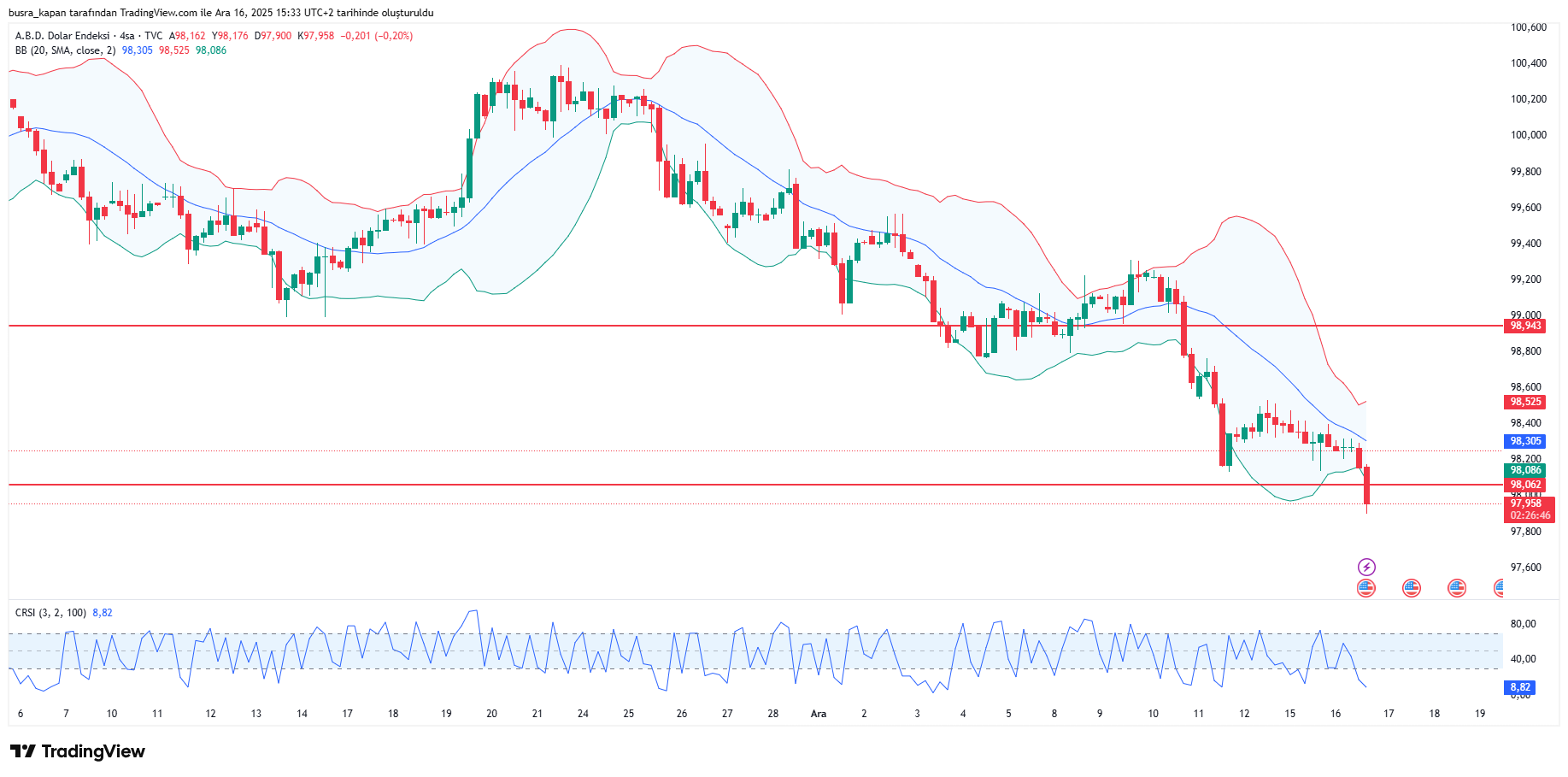 Dolar endeksi kritik veri öncesinde sert düşüşler yaşayarak 98 puana kadar geriledi. Veriden hemen sonra 97,89 puan seviyesinde bulunuyor.