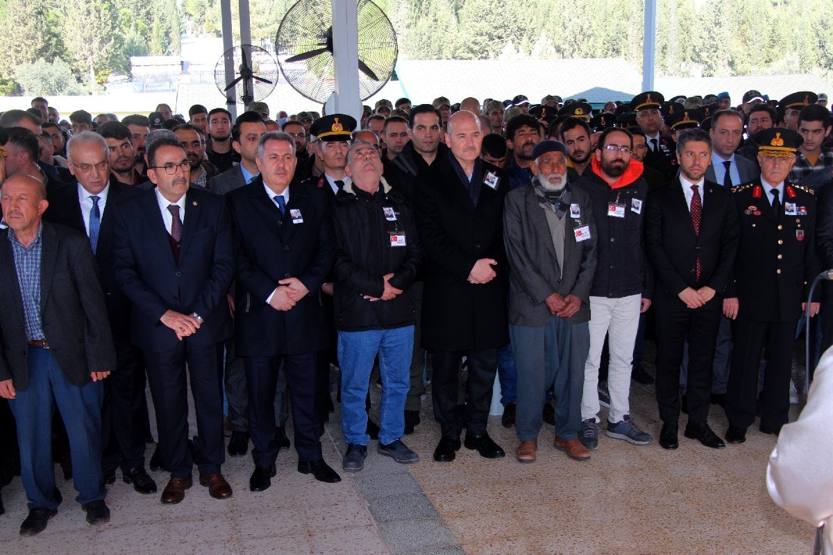 Bakan Soylu'nun da tabutuna omuz verdiği şehidin cenazesi, gözyaşları arasında toprağa verildi. Öte yandan Yasin Eroğlu'nun polis memuru dayısı Mustafa Gültepe'nin de 1979 yılında Muş'ta 2 aile arasında yaşanan silahlı çatışmada şehit olduğu öğrenildi. (DHA)
