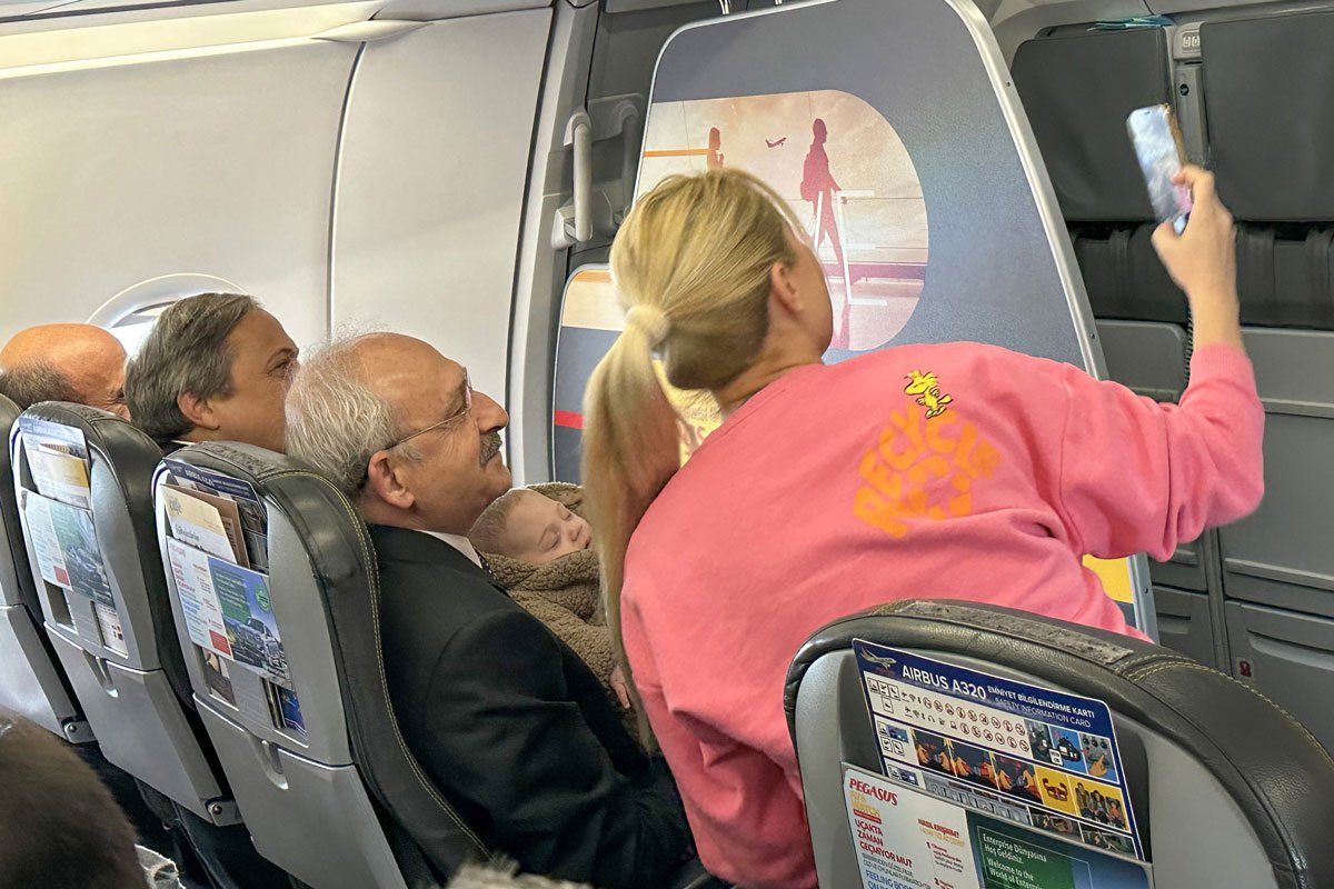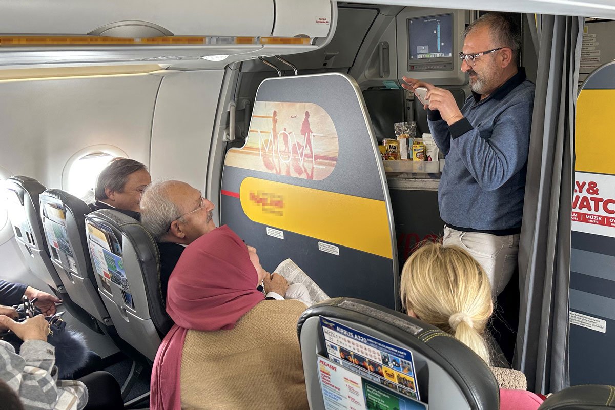 Uçakta vatandaşların fotoğraf çekilme taleplerini kırmayan Kılıçdaroğlu’nu Adnan Menderes Havalimanı’nda İzmir Büyükşehir Belediye Başkanı Tunç Soyer karşıladı.