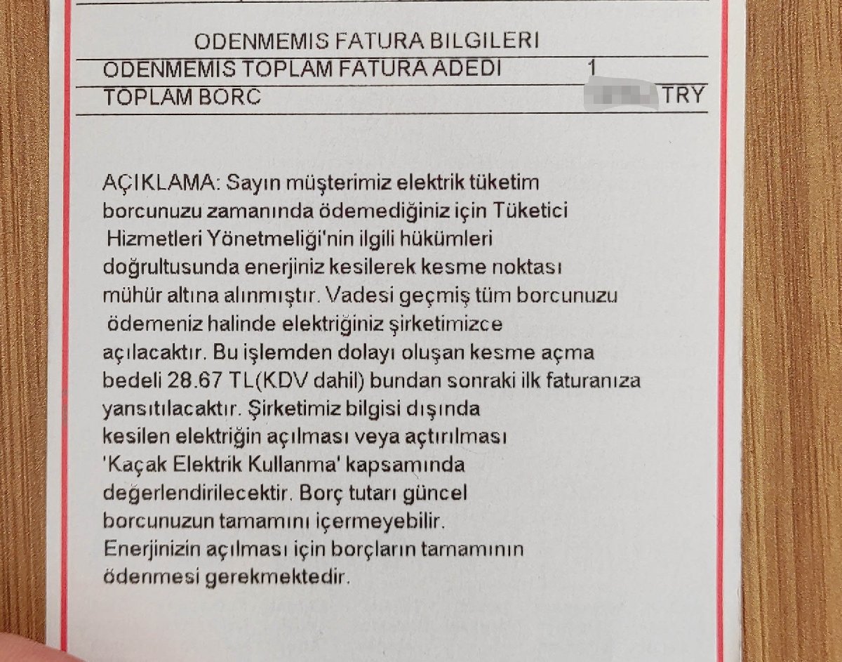 "Alışacağız, atlatırız, o kadar önemli değil. Biz zaten ödeyemeyecek durumda değildik. Ama dört milyon aile var elektriği kesilen. Onlarla dayanışma içinde olalım, dedik. O nedenle, atlatacağız. Saat 11 gibi kesildi. İdare edeceğiz, önemli değil."
