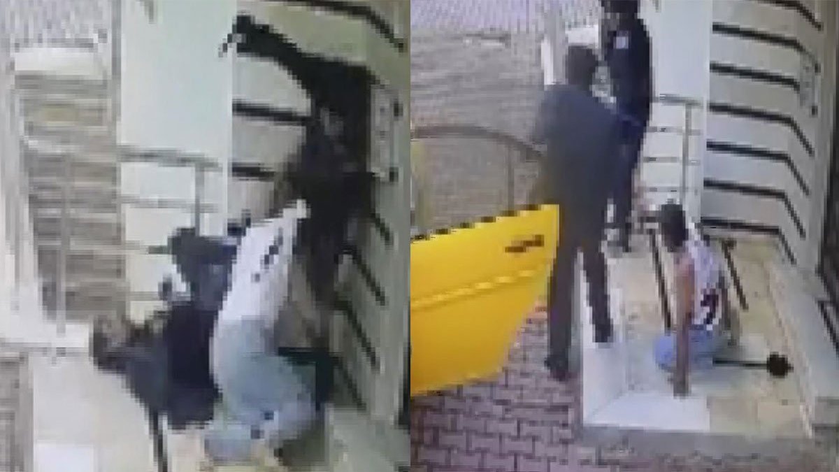 Diğer yandan, saldırganın daire kapısı önünde beklediği, arkasına sakladığı bıçağı çıkartıp kuzenlerine saldırdığı anlar güvenlik kameralarına yansıdı. (DHA)