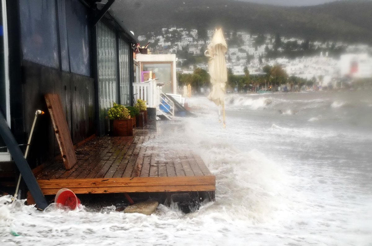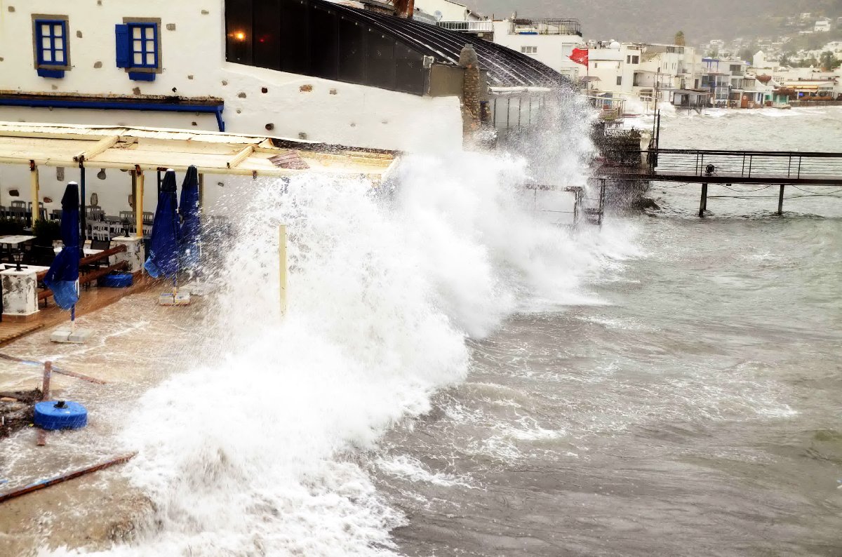 Kumbahçe Mahallesi ile Ortakent Mahallesi’nde sahile hızla gelen ve 10 metre yüksekliğe kadar çıkan dev dalgalar nedeniyle sahildeki ev, kafeterya, restoran ve oteller sular altında kaldı. Dalgalar Cumhuriyet Caddesi’ne kadar çıkarken sahildeki işyerlerinin masa ve sandalyeleri sular altında kaldı. Deniz dalgalarla birlikte 20 metre kadar içeriye girdi.