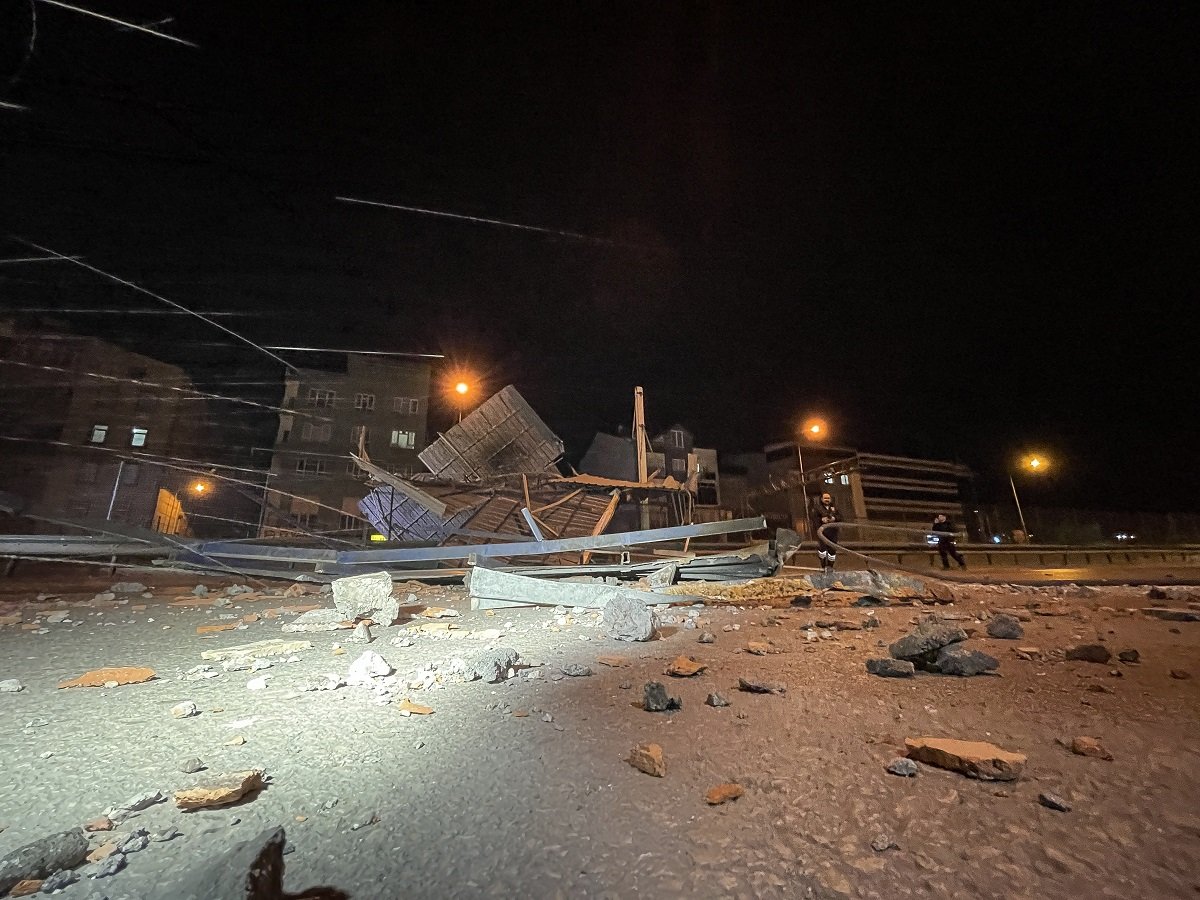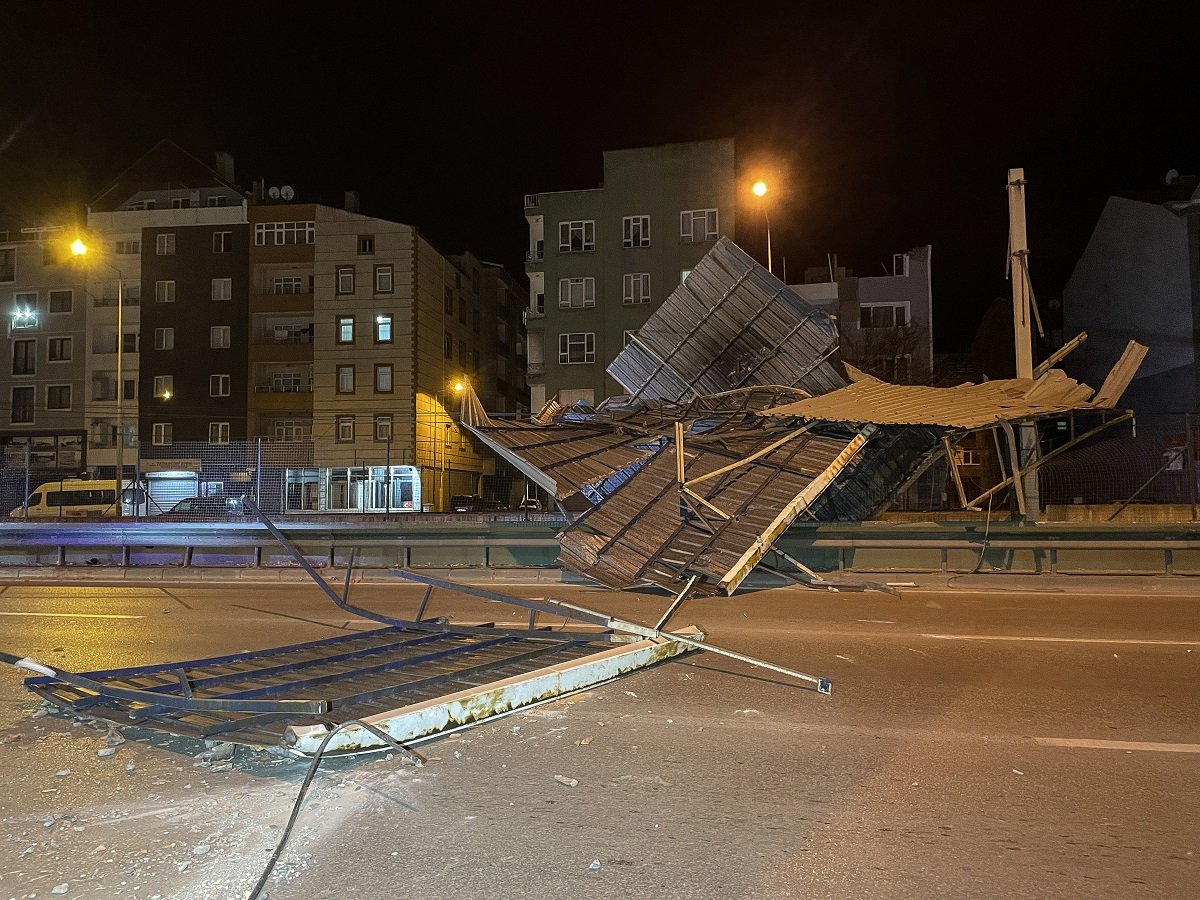 Uçan çatı metro hattındaki enerji tellerine zarar verirken, çatıdan kopan parçalar nedeniyle yol bir süre trafiğe kapatıldı.