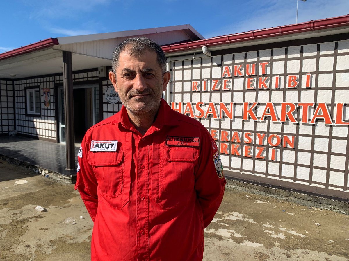 Kurtarma anlarını anlatan AKUT Rize ekip lideri Güçlü Alioğlu, "Piyade komandolardan bir arkadaş, bizden bir kişinin sağ olup, ses duyduğunu söyleyerek bizden yardım istedi. Biz de bir ekip gönderdik. Enkaz altında ailesinin yanından biri sıkışmıştı. Tehlikeli bir bölge olduğu için çalışma daha sonrasında yarım bırakılmış. Bir Macar ekibinin orada çalıştığı ve sonra da ayrıldığını öğrendik. Ekibimiz 5 saat çalışmanın neticesinde Aliyi oradan canlı çıkardı dedi.