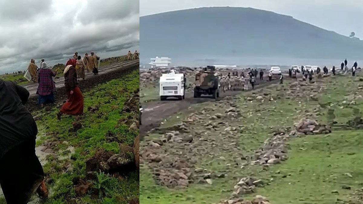 Bu sırada bir grup, çalışmayı engelleyip köy yoluna taş dizerek ulaşıma kapattı. İhbarla olay yerine jandarma ekipleri sevk edildi. Burada jandarma ile grup arasında tartışma çıktı. Tartışma kısa sürede arbedeye dönüşünce jandarma ekipleri, kalabalığa tazyikli su ve biber gazıyla müdahale etti.