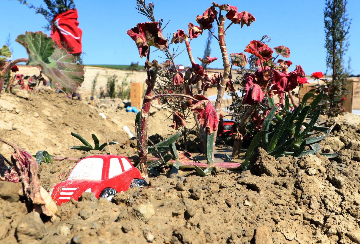 Hayatını kaybedenlerin mezarlarına onlara ait eşyalar ve fotoğraflar bırakıldı. Depremde ölen çocukların mezarlarının başına bırakılan oyuncak ve kıyafetler ise geride kalanların üzüntüsünü gözler önüne serdi.