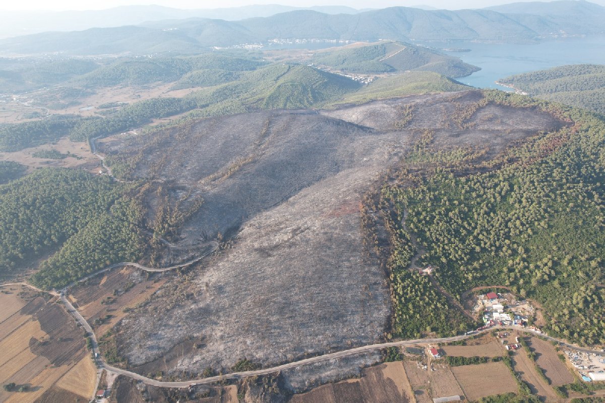 Yanan alanlar havadan görüntülendi.
