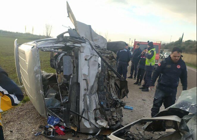 Karacabey ilçesinden Boğaz yönüne giden Mehmet Sabır İ. yönetimindeki 06 KNE 76 plakalı minibüs, Suat Güven'in (35) kullandığı 16 KD 234 plakalı otomobille kafa kafaya çarpıştı.
