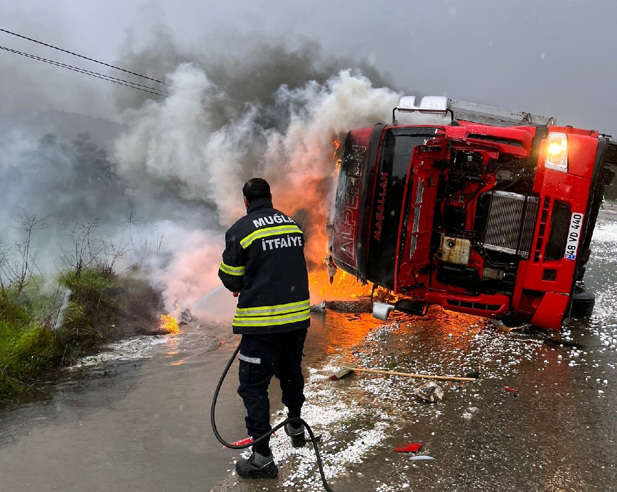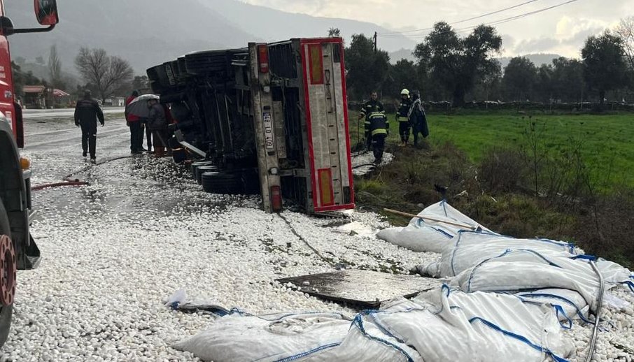 TIR yolun kenarına çekmeye çalışan sürücü direksiyon hakimiyetini kaybederek aynı yönde seyretmekte olan M.İ.’nin kullandığı 34 TM 4649 plakalı aracın üzerine devrildi.