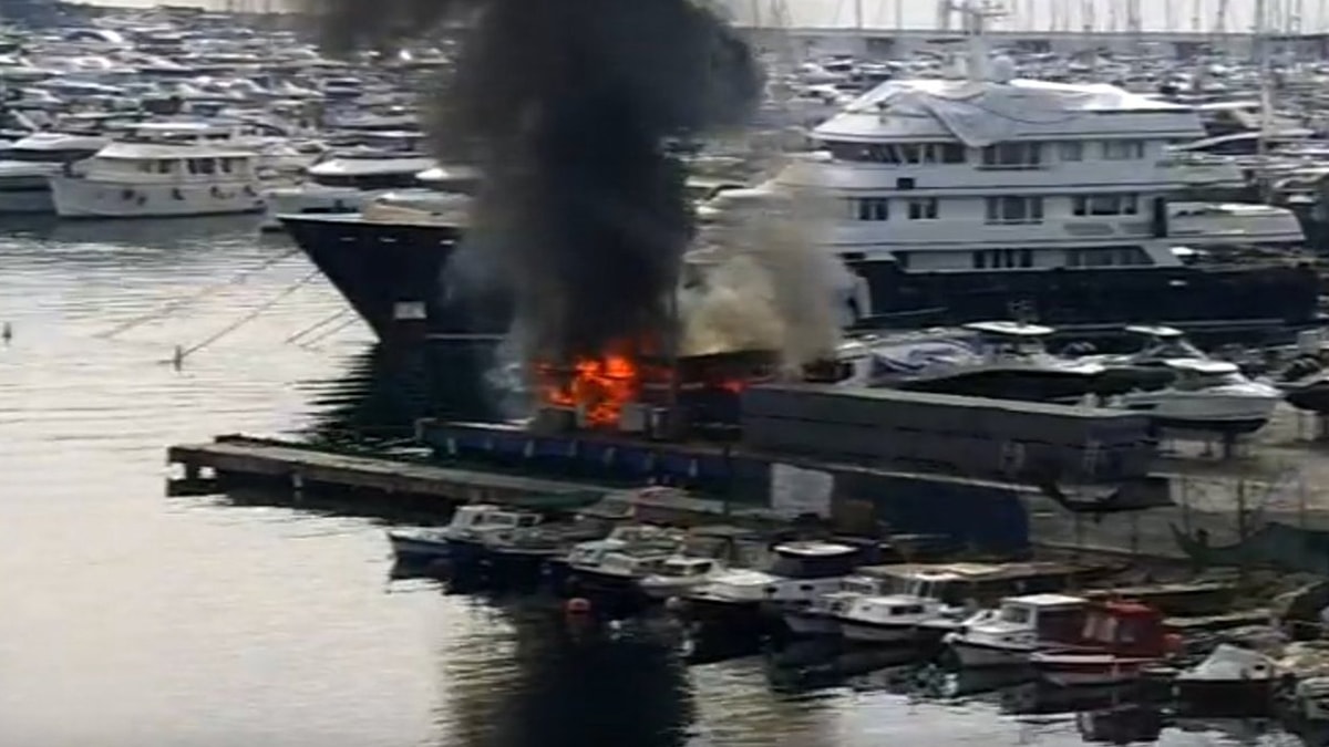 Son Dakika Haberi... Marina'da çıkan yangın cep telefonu kameralarıyla kayıt altına alınırken itfaiye ekipleri karadan ve denizden müdahale etti.