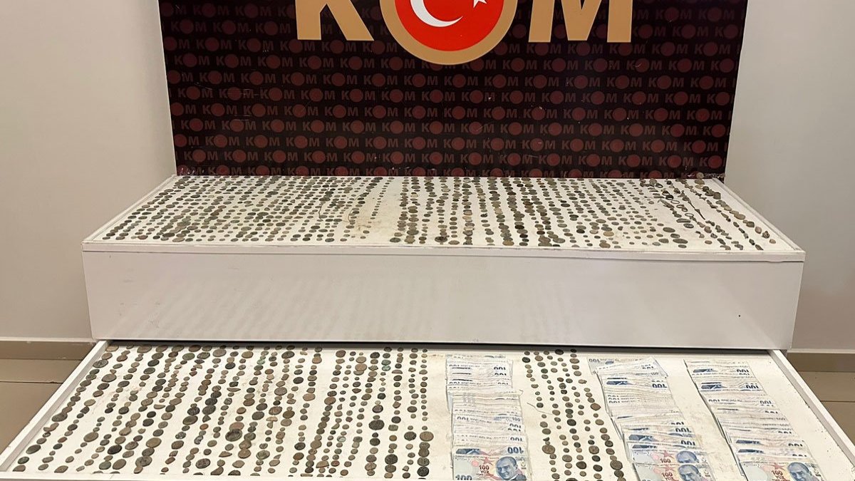 Yapılan incelemelerde şahıs hakkında daha önce Kültür ve Tabiat Varlıklarını Koruma Kanununa Muhalefetten işlem yapıldığı anlaşıldı. Şahsın üzerinde ve araç içinde detaylı bir arama yapan ekipler aracın motor kaputu içine gizlenmiş vaziyette tarihi eser niteliğinde olan 1.460 adet sikke ve çeşitli obje ile kaçakçılıktan elde edildiği değerlendirilen yüklü miktarda para ele geçirildi.