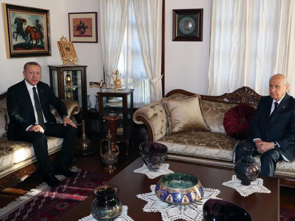 Bahçeli, Cumhurbaşkanı Erdoğan'ı kapıda karşıladı. Saat 18.00 sıralarında başlayan görüşme yaklaşık 50 dakika sürdü.