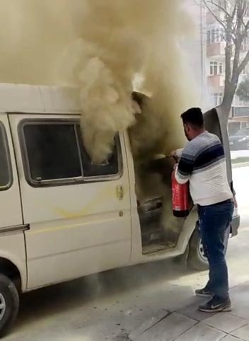 Dumanı gören kişiler yangına kendi imkanlarıyla müdahale etti. İsmi öğrenilemeyen minibüs sürücüsü de yangını söndürmeye çalıştı. Yangın söndürme tüpleriyle söndürülen minibüste maddi hasar oluştu. Yangının, minibüsteki çakmaklıktan çıktığı öğrenildi. (DHA)