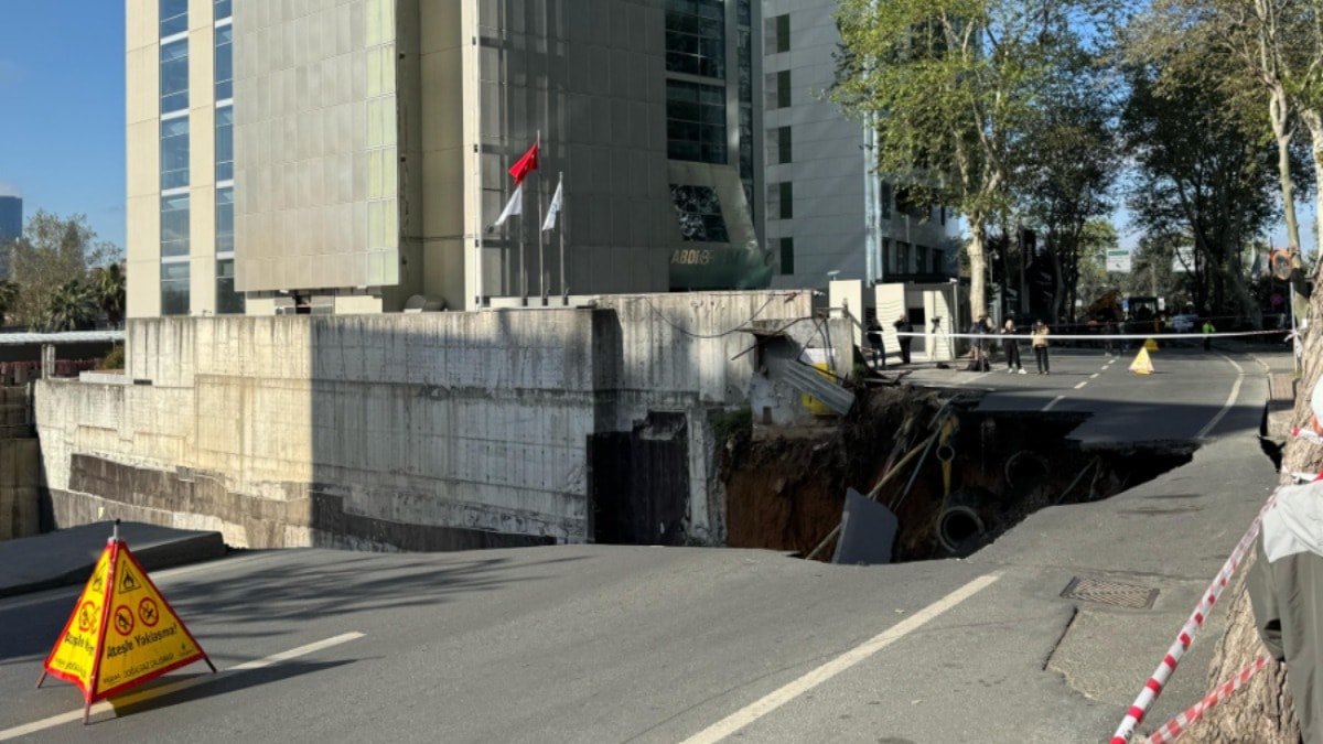 Sarıyer Maslak Eski Büyükdere Caddesi'nde saat 02.41'de yolda çökme meydana geldi.