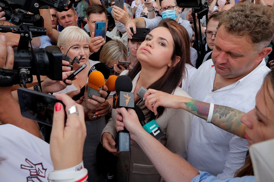 Seçimlere adaylığını koyan eşinin gözaltına alınmasının ardından seçimlerde Lukaşenko'nun karşısına çıkan Tikhanouskaya oyların yaklaşık yüzde 7'sini aldı.