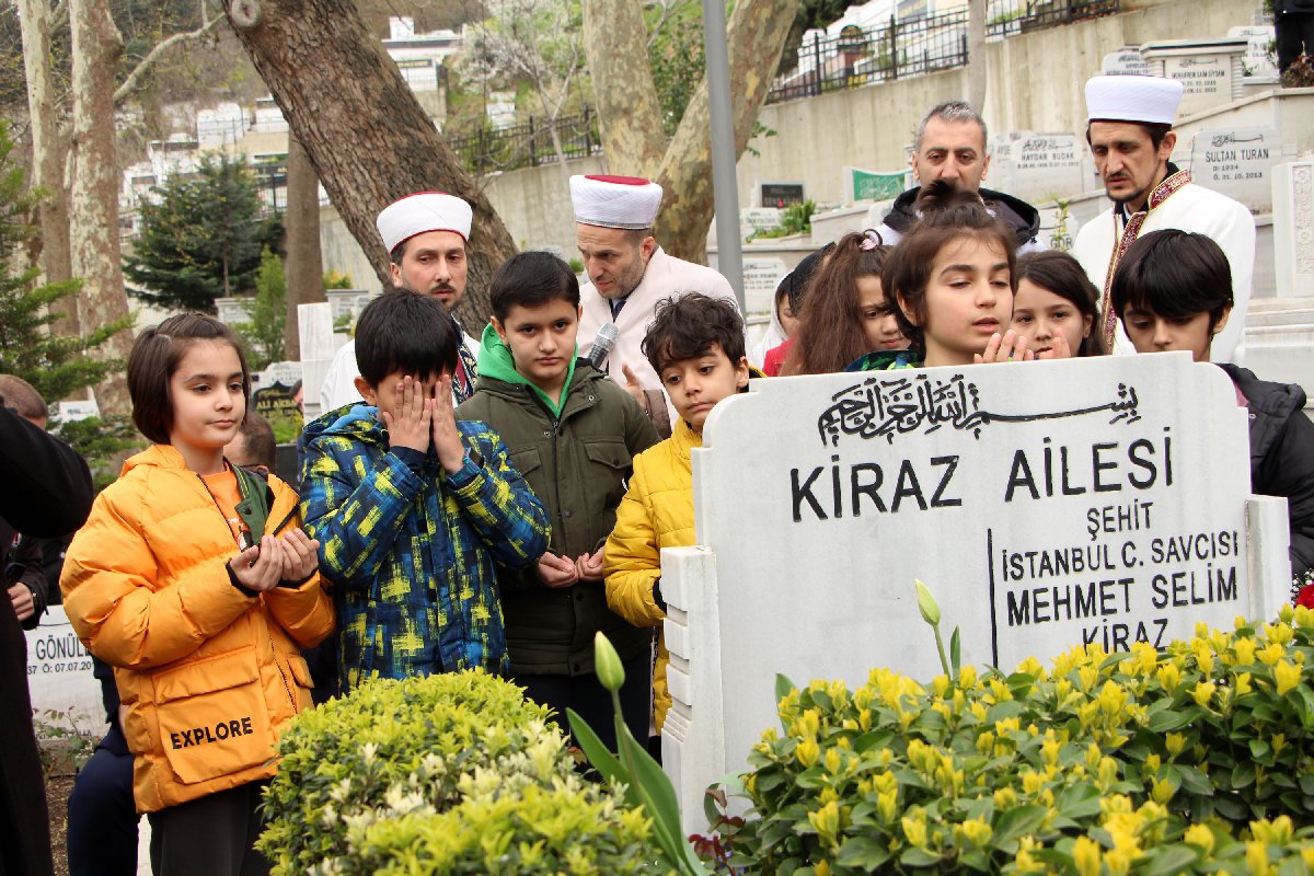 Anma töreninde Kuran-ı Kerim okunduktan sonra dua edildi. İBB Şehit Savcı Selim Kiraz İlkokulu öğrencileri de mezar başına çiçek bırakarak dua etti (DHA)
