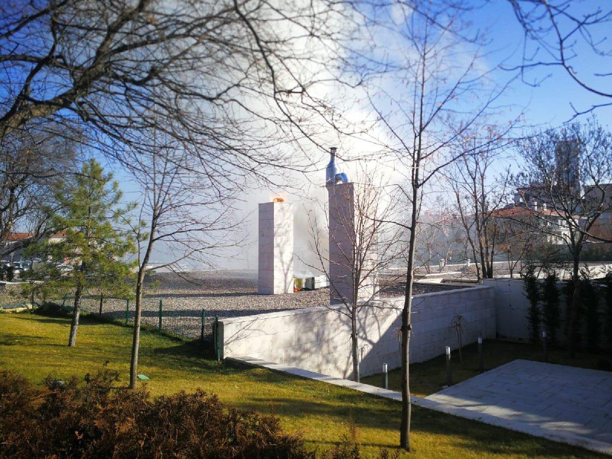 Yangın sonrası yürütülen söndürme çalışmaları sırasında Meclis yerleşkesi üzerinde yoğun duman gözlendi.