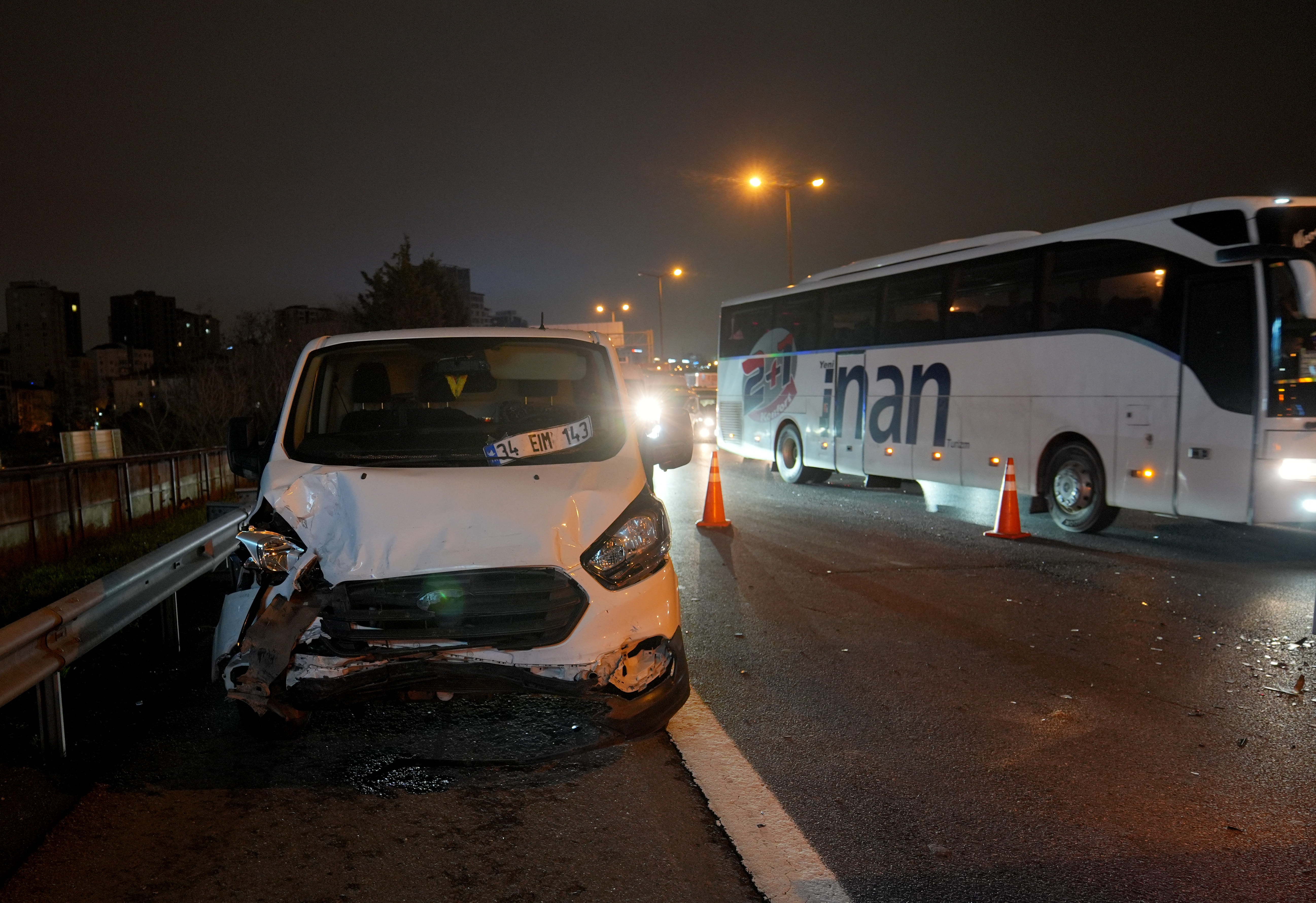 Zincirleme kaza, saat 06.20 sıralarında TEM Otoyolu Edirne istikameti Ümraniye Fatih Sultan Mehmet Köprüsü ayrımında meydana geldi.