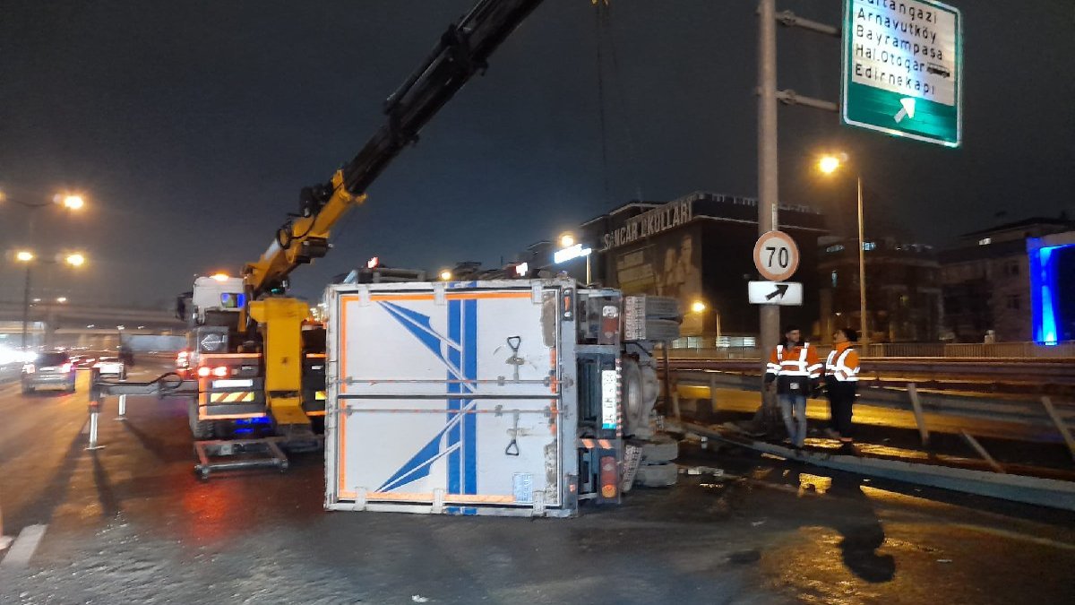 Kaza nedeniyle TEM otoyolu Edirne istikametinde trafik yoğunluğu yaşandı. Yaklaşık bir saat süren çalışmanın ardından kamyonet vinç yardımıyla çekildi. Kamyonetin kaldırılmasının ardından trafik normale döndü. (DHA)