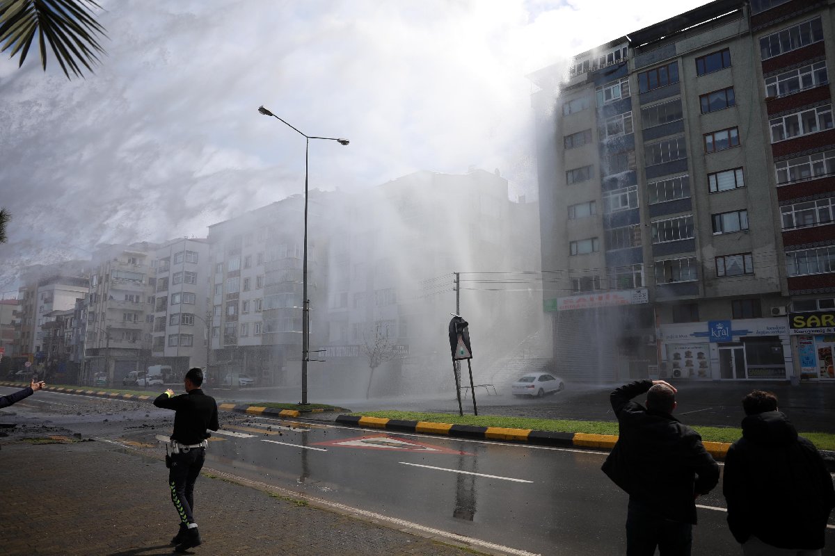 Apartman sakinleri de balkonlardaki suyu kovalarla boşalttı. Su basan yol çift yönlü ulaşıma kapatılırken, 8 katlı apartmanın hasar gören çatı katı tedbir amaçlı boşaltıldı. Bölgedeki su akışını kesen ekipler, temizlik ve arıza onarım çalışması başlattı.