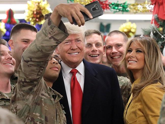 Al Asad Hava Üssü'nde ABD askerleriyle bir ara gelen Trump'ın yanında First Lady Melania ve Ulusal Güvenlik Danışmanı Bolton'da vardı.