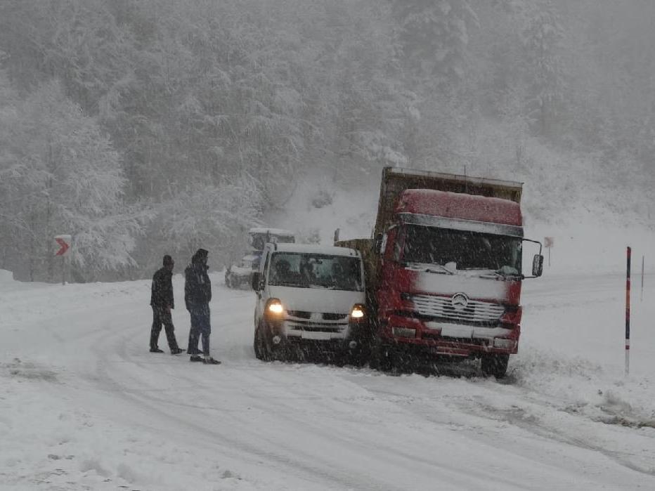Kütahya'nın Domaniç ilçesinde gece saatlerinde başlayan kar yağışı sürücülere zor anlar yaşatıyor.