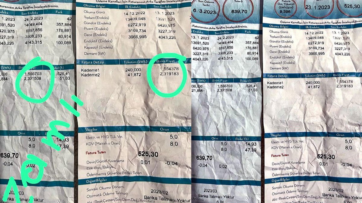 Birim fiyatını da depremzedeye zamlı yansıtan DEDAŞ, bir önceki dönem faturanın bin 554.378 lira iken, birim fiyatına yapılan zamla son kesimi yapılan fatura bin 566.703 TL olarak gösterildi.