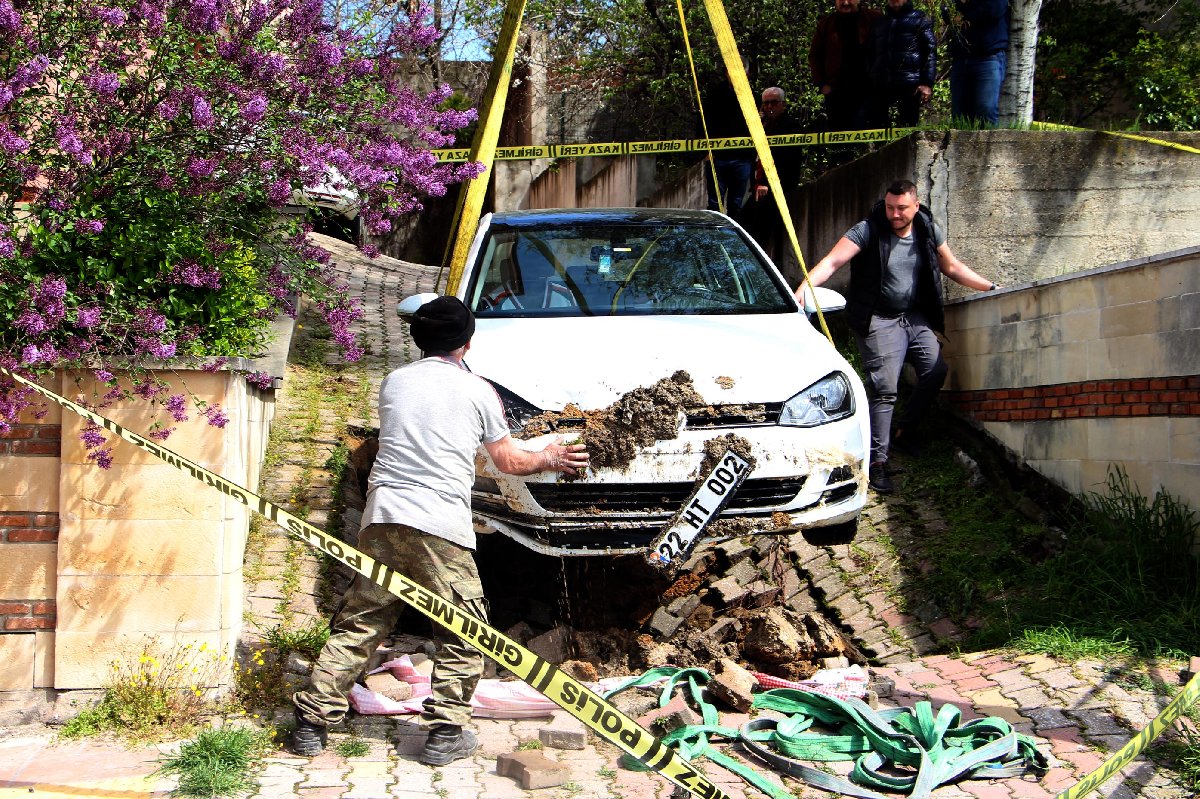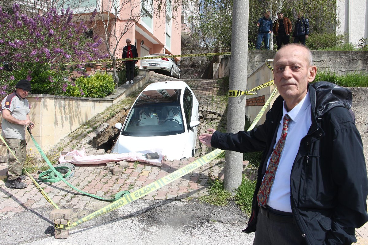 Otomobil oluşan 1 metre derinliğnideki çukura düştü. Araçta mahsur kalan Mustafa Türkselçi, komşularının yardımıyla çıktı. Otomobil ise getirilen vinç ile çukurdan çıkarıldı.