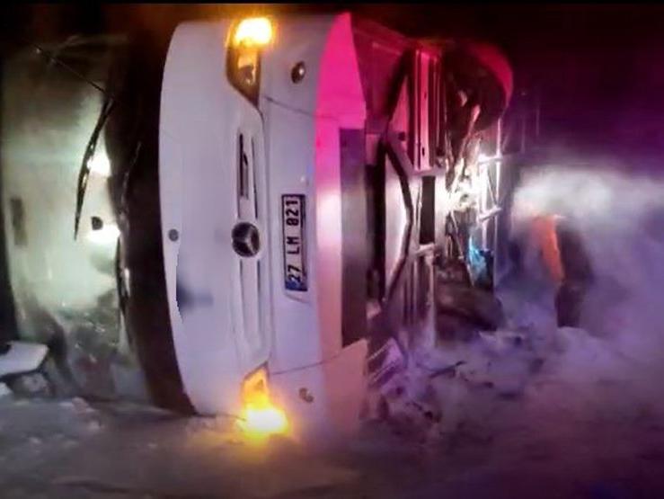 İbrahim Halil Hilaloğlu yönetimindeki 27 LM 821 plakalı yolcu otobüsü, kar yağışı ve tipi nedeniyle kontrolden çıktı. Sürücüsünün direksiyon hakimiyetini kaybettiği otobüs, yan yatarak devrildi. İhbar üzerine kaza yerine çok sayıda ambulans ve itfaiye ekibi sevk edildi.
