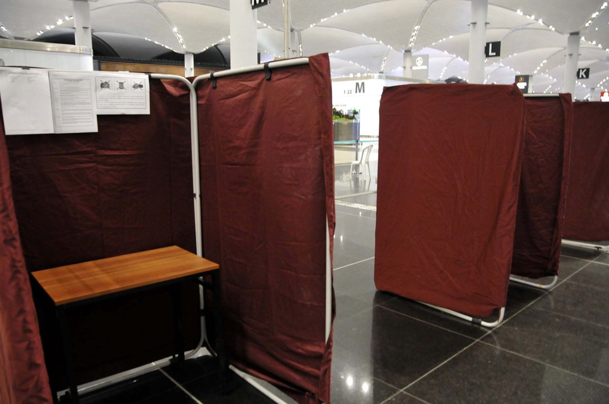 Yurt dışında yaşayan Türk vatandaşlarının oy kullanacağı noktalardan biri olan İstanbul Havalimanı'nda oy verme işlemlerinin başlamasına saatler kala son hazırlıklar tamamlandı.