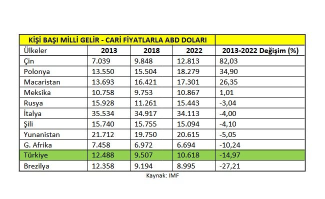 Şimdi gelelim şu son beş yıla. Türkiye son beş yılda kişi başına milli gelirini yüzde 11,69 arttırmış. Aynı dönemde Meksika’da da o kadar bir artış var. Polonya yine bizden daha hızlı bir artış yakalamış.